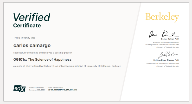 Soy Carlos Camargo, comunicador, autor y certificado en The Science of Happiness por la Universidad de California, Berkeley. A través de ebooks, asesorías personalizadas y contenido transformador, te acompaño a reprogramar tu pensamiento, desarrollar hábitos de gratitud, y vivir con plenitud desde el propósito.